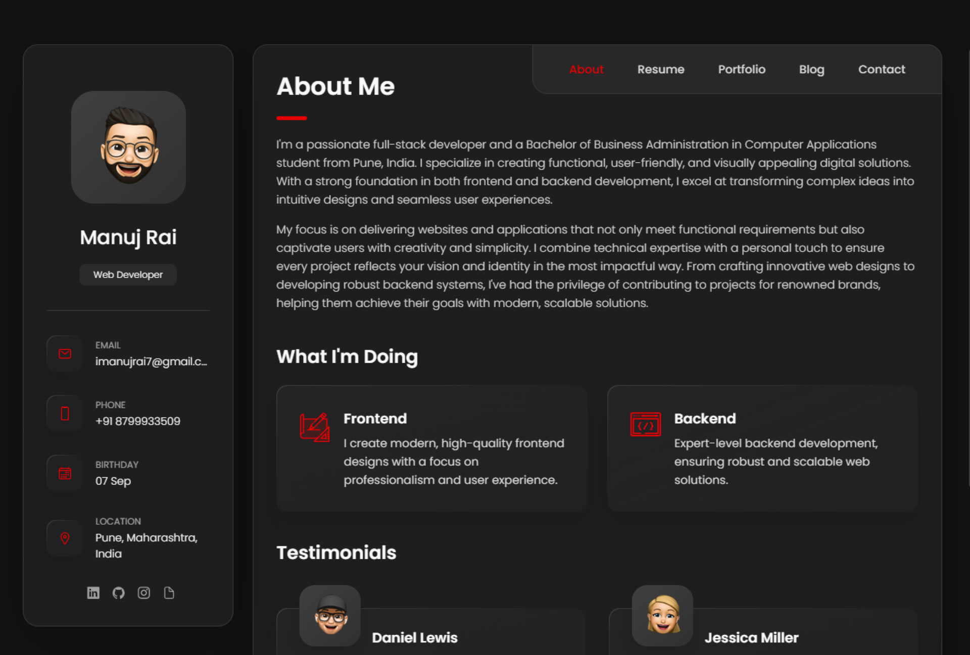 My focus is on delivering websites and applications that not only meet functional requirements but also captivate users with creativity and simplicity. I combine technical expertise with a personal touch to ensure every project reflects your vision and identity in the most impactful way. From crafting innovative web designs to developing robust backend systems, I've had the privilege of contributing to projects for renowned brands, helping them achieve their goals with modern, scalable solutions.